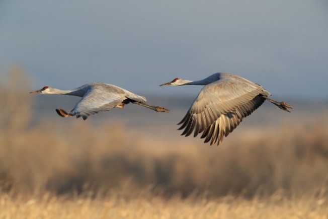 Upon arrival in Wisconsin, Sandhill cranes spread out across the landscape to establish nesting territories near open, grassy wetlands. Even though cranes typically mate for life, they take nothing for granted as each spring brings serious courtship rituals. Regal males call loudly and put on elaborate dance displays with outstretched wings, head pumping, and excited leaps to impress their mate. After all this romance, the pair usually lays two eggs. With luck, at least one of these eggs will result in one chick making it to adulthood. Though they reproduce slowly, Wisconsin’s sandhill crane flock continues to grow, with roughly 65,000 cranes calling it home.