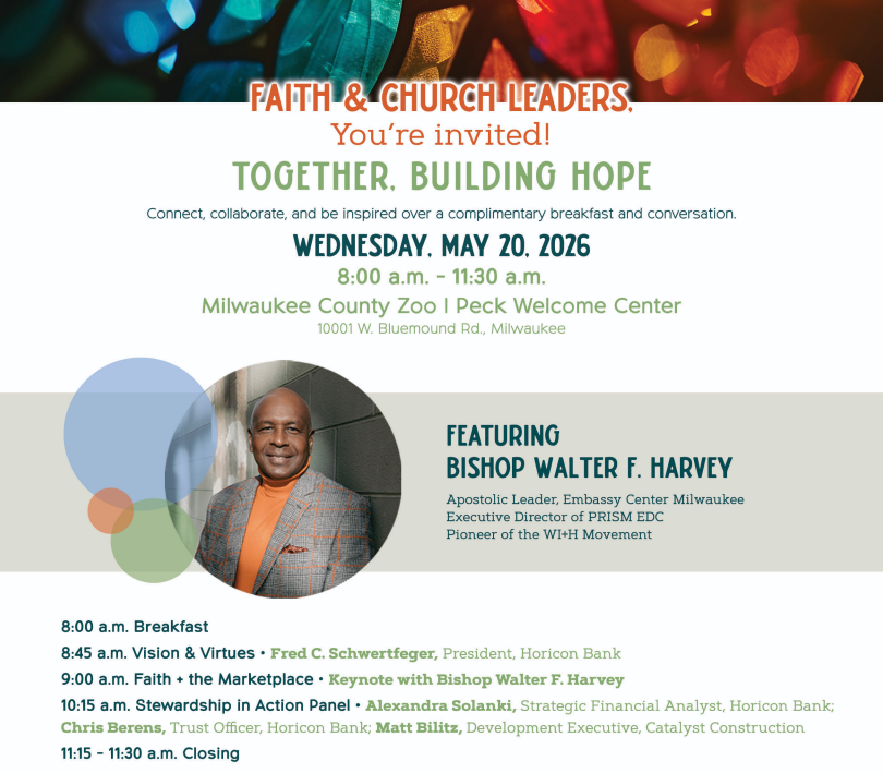 Horicon Bank partners with churches across our footprint, and it’s among the most meaningful work we do. We know a congregation’s financial health isn’t just about balance sheets—it’s about sustaining ministries, supporting families, and strengthening communities through wise stewardship.